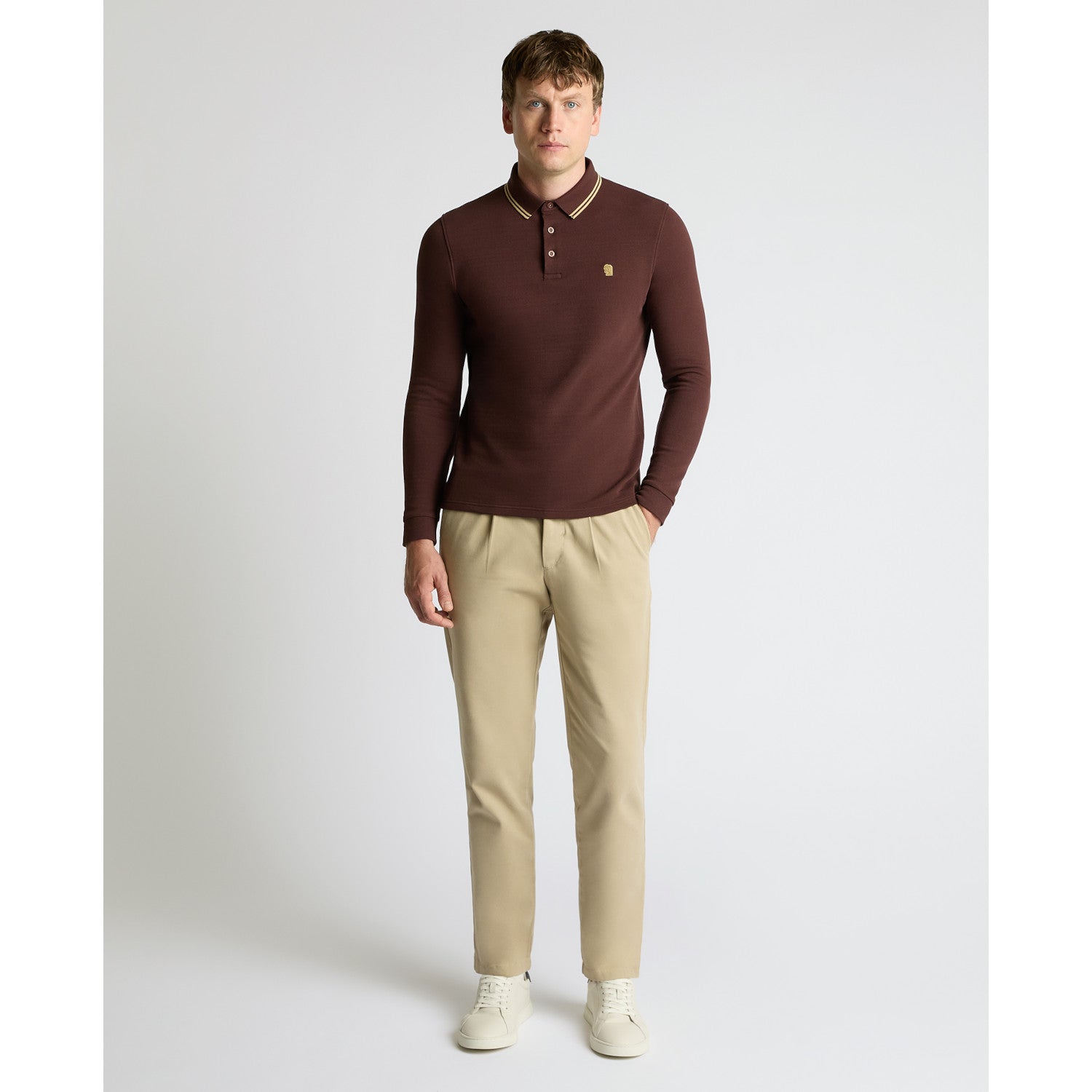 Remus Uomo 58861 48 Brown Long Sleeve Polo Shirt