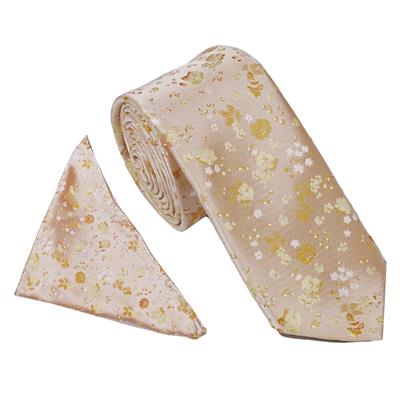 Wallace Woven Floral Gold Tie & Hankerchief Set
